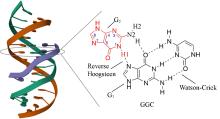 羟基自由基(•OH)是一种有代表性的活性氧物质(ROS), 可与DNA分子反应导致DNA损伤. 研究结果表明, •OH与鸟嘌呤(G)反应具有氢键依赖特性, 反平行三链中G碱基氢键环境与已报道的体系不同, 且更复杂, 可能导致反平行三链中•OH与G碱基衰变反应不同. 基于此, 本文选取反平行三链碱基对GGC为模型, 通过结构分析、 最高占据轨道计算、 构建C4, C5, C8加成和夺氨基氢(⁃H2)反应吉布斯自由能面等研究了氢键对G与•OH反应的影响. 结果显示, •OH可与第三条链中的G碱基通过直接夺氢反应生成中性自由基G(-H2)•; C8加成自由基在O2参与时易生成8-oxoG, 能垒低于夺氢路径, 为主反应通道, 但夺氢路径可与之竞争; 此外, 离子对中间体稳定性受氢键影响, 在GGC碱基对中, 羟基化自由基比离子对中间体更稳定.