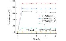Fig.9 4×24 h long period reaction of FBWO@T5C, TC and FBWO@T5 to ozone