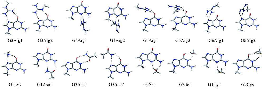 Table 5 Change of atomic charges in isolated base G and hydrogen bonded complexes