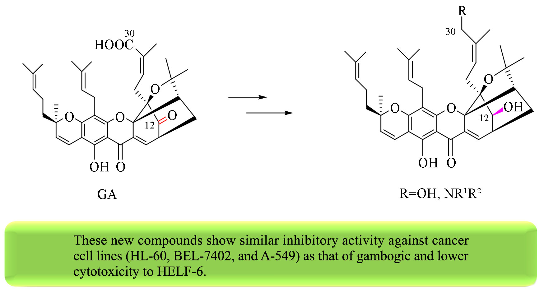 Synthesis, characterization and antiproliferative activity of regioselectively reduced and aminated derivatives of gambogic acid