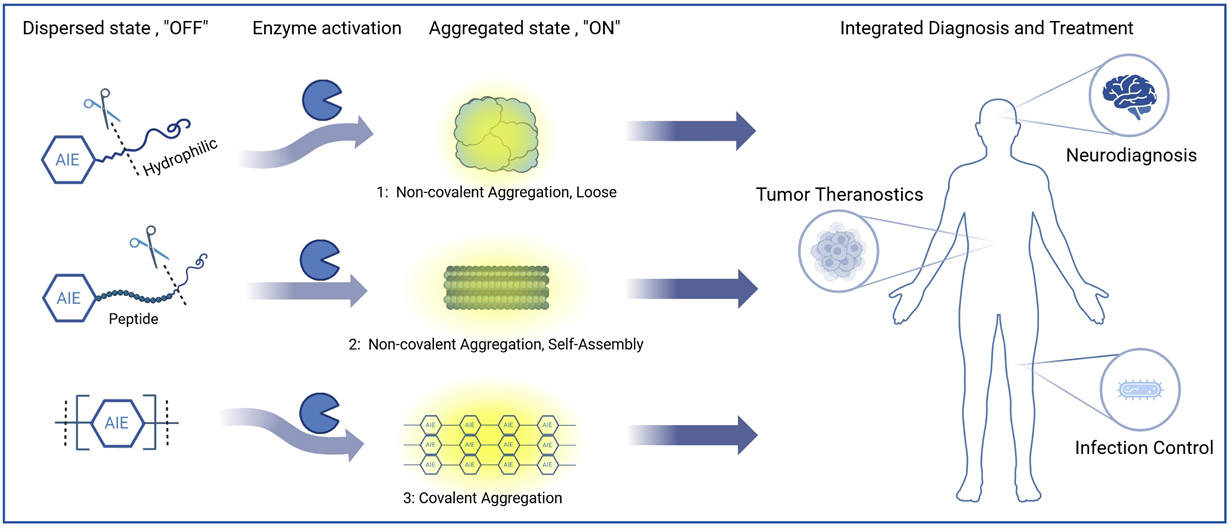 [点亮聚集体之光,共筑学术丰碑——庆祝唐本忠院士七秩华诞专辑]Intelligent Response, Precision Activation: Novel Theranostic Strategies of Enzyme-Responsive Aggregation-Induced Emission Materials in Biomedicine