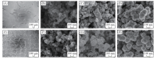 | Fig.2 SEM images before and after sputtering Pt on GDL surface (A), (B) C-GDL; (C) C-GDL-200 s; (D) C-GDL-1200 s; (E), (F) T-GDL; (G) T-GDL-200 s; (H)T-GDL-1200 s. |