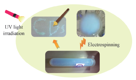 | Scheme 2 Pattern(written with the carbon dots solution as ink) and carbon dots fiber showing cyan fluorescence under UV light |