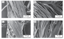 为了进一步验证CHI-CSS/HA聚合物膜的实用性, 研究了(CHI-CSS/HA)× 13聚合物膜在手术缝合线和医用绷带表面的组装沉积. 在组装CHI-CSS/HA聚合物膜之前手术缝合线和医用绷带表面首先组装1个周期的枝化聚乙烯基亚胺/透明质酸, 使其表面沉积有利于CHI-CSS/HA聚合物膜组装的底膜. 利用SEM对手术缝合线和医用绷带在组装(CHI-CSS/HA)× 13聚合物膜前后的表面形貌进行了表征. 如图6所示, 手术缝合线由许多单股蚕丝线相互缠绕构成, 蚕丝线表面在沉积(CHI-CSS/HA)× 13聚合物膜之前表面并不平整, 而组装(CHI-CSS/HA)× 13聚合物膜后, 表面可以清晰地观察到连续的聚合物膜, 且表面变得平整光滑. 医用绷带的表面在沉积(CHI-CSS/HA)× 13聚合物膜前后也表现出相似的现象. 结果说明, CHI-CSS/HA聚合物膜可方便地在手术缝合线和医用绷带表面沉积, 具有良好的实际应用前景.