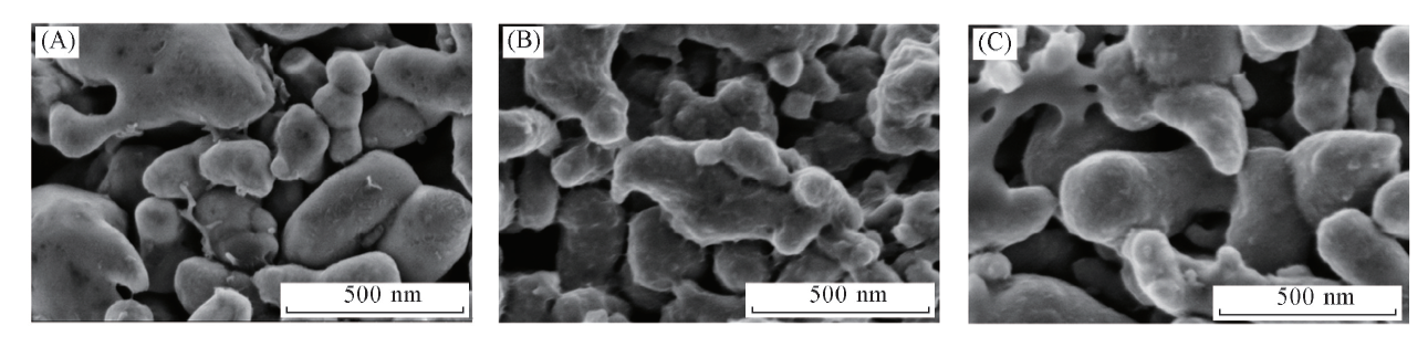 | Fig.6 SEM images of surface morphology of LiFePO4 electrode(A) Original; (B) cycled in electrolyte without DESCN at -20 ℃; (C) cycled in electrolyte with 2% DESCN at -20 ℃. |