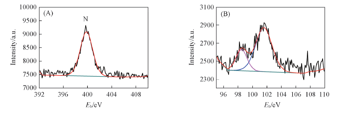 | Fig.8 N1s(A) and Si2p(B) XPS spectra of LiFePO4 electrodes cycled in the electrolyte containing 2%DESCN |
