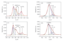 循环后的正极材料使用扫描电子显微镜观察电极表面形貌, 采用附带的能量散射光谱仪(EDS)分析表面SEI膜元素组成. 电极表面XPS元素分析使用ESCALAB250 X射线光电子能谱仪, 以Al K(1486.6 eV)作为X射线光源, 阳极电压为15 keV.