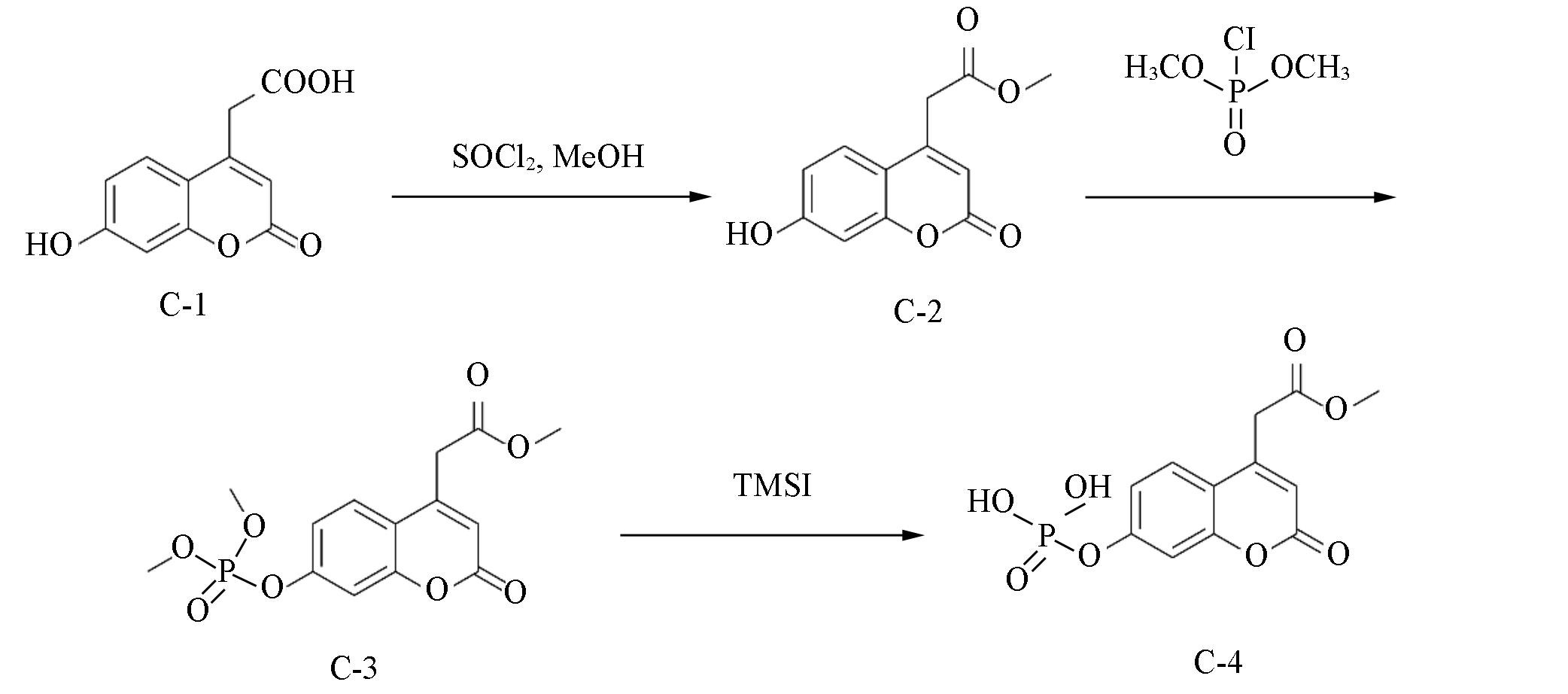 | Scheme 2 Syntheses of alkaline phosphatase substrate 7?(dihydroxyphosphoryloxyl) coumarin?4?acetic acid methyl ester(C?4) |