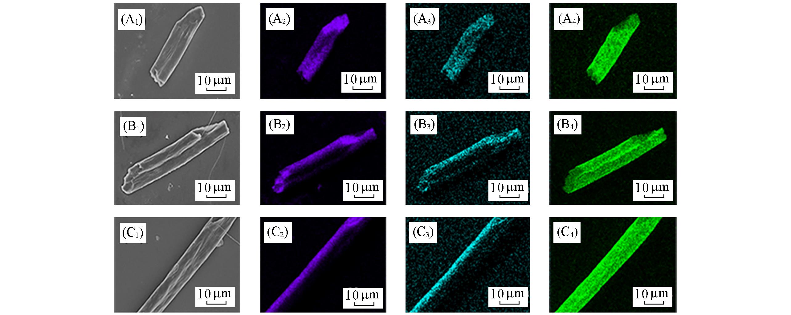 | Fig.5 SEM images(A1—C1) and corresponding elemental mappings(A2—A4, B2—B4, C2—C4) of SPAN with different cross?linking degrees |
