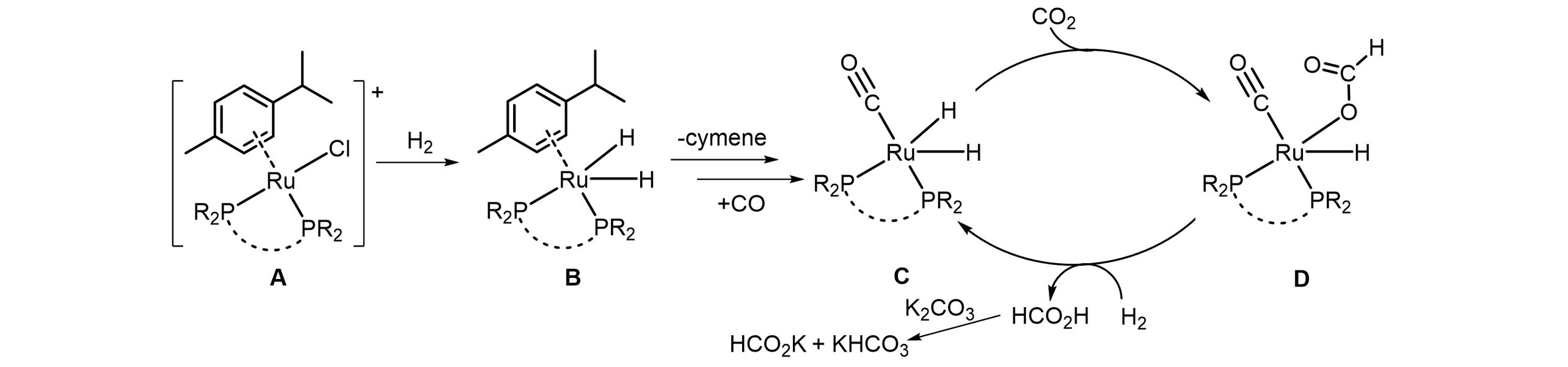 | Fig.7 Proposed mechanism for the catalytic hydrogenation of CO2 to formate[ Copyright 2018, Wiley-VCH. |