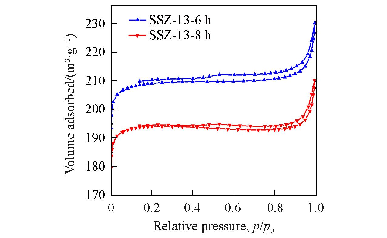 | Fig.7 N2 adsorption⁃desorption isotherms of SSZ⁃13⁃6 h and SSZ⁃13⁃8 h samples |