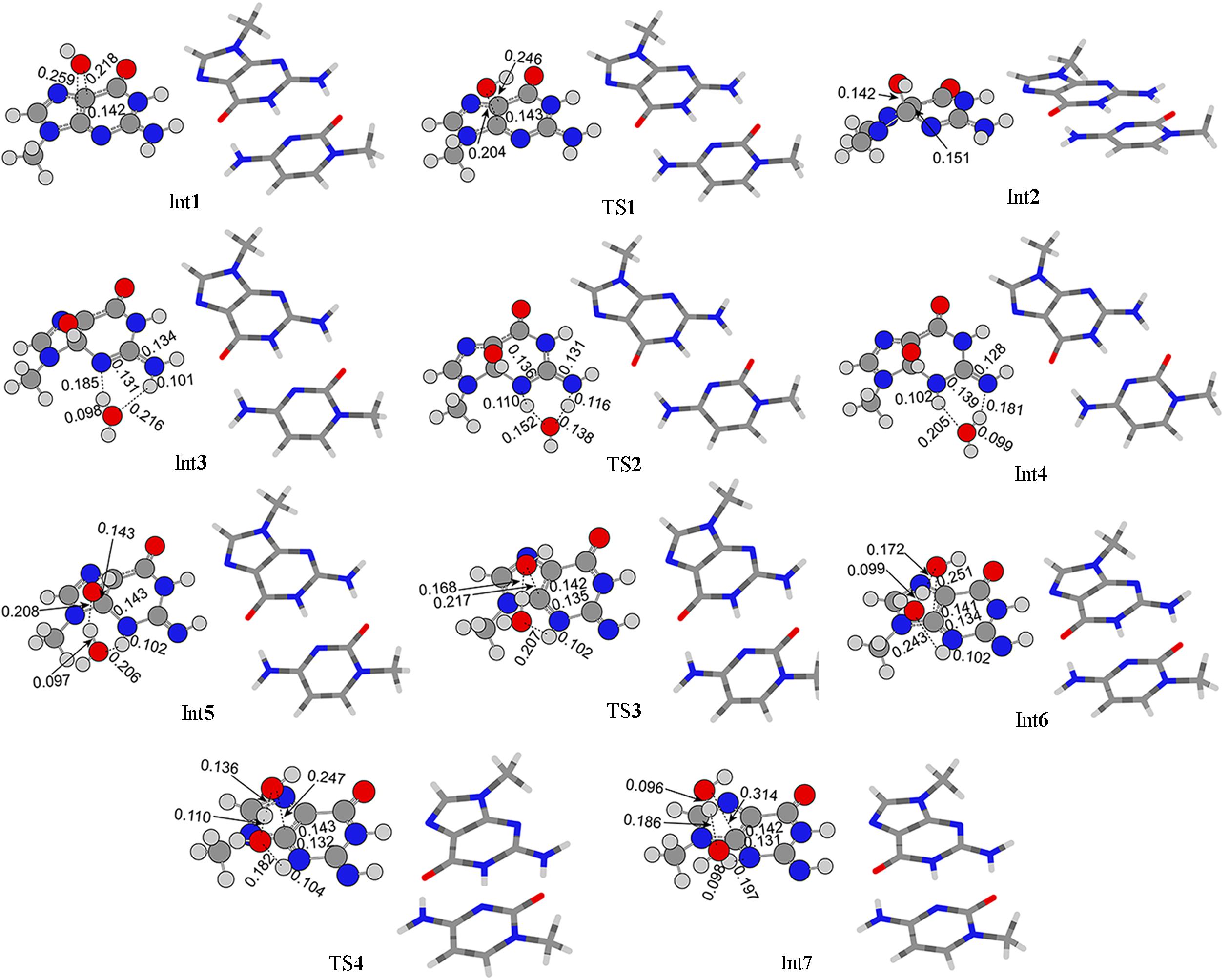 | Fig.4 Optimized geometries for related species along with C4 pathway obtained at IEFPCM/M06⁃2X/6⁃31++G(d, p) level |