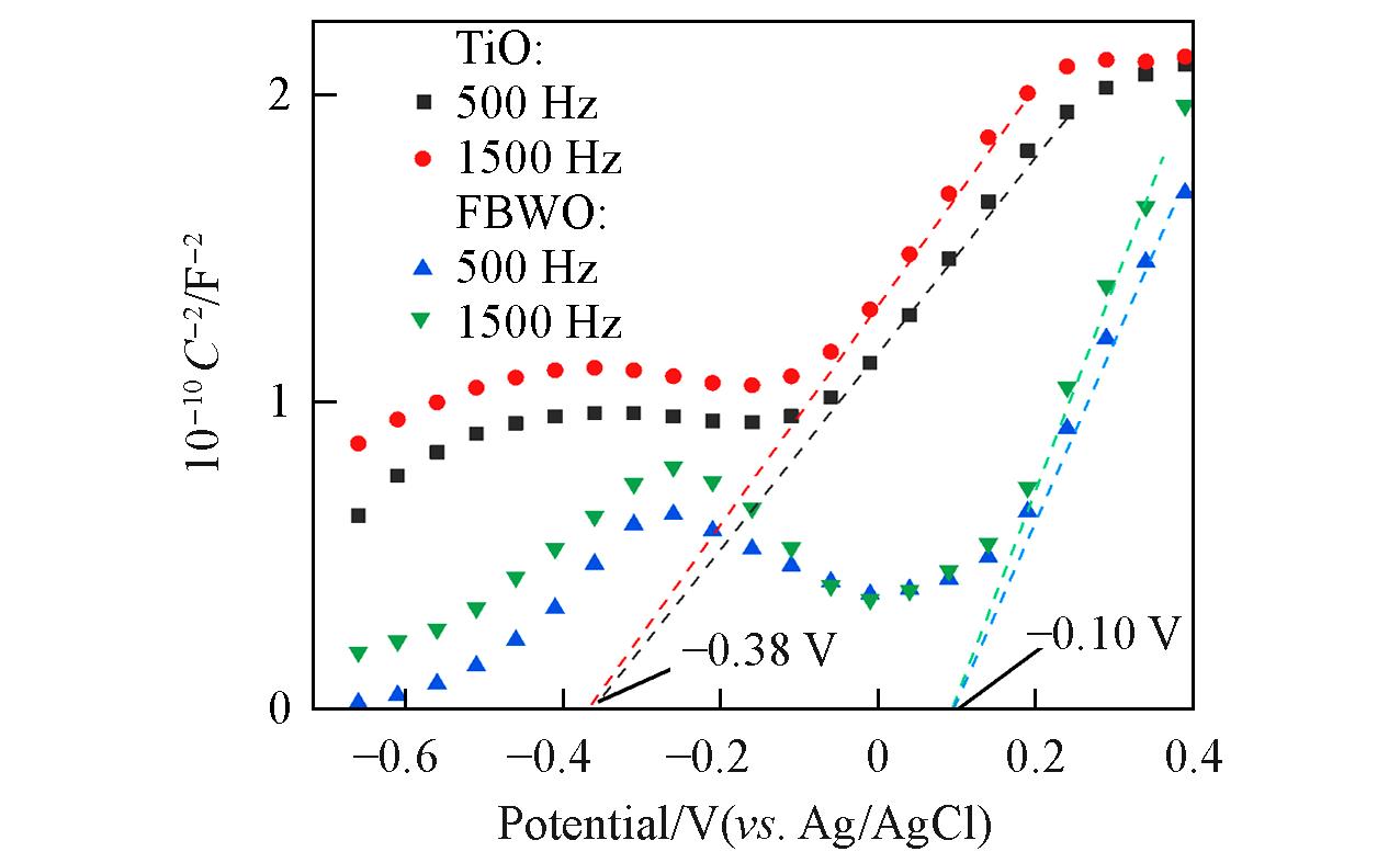 | Fig.6 Mott⁃Schottky curves of FBWO and TiO2 |