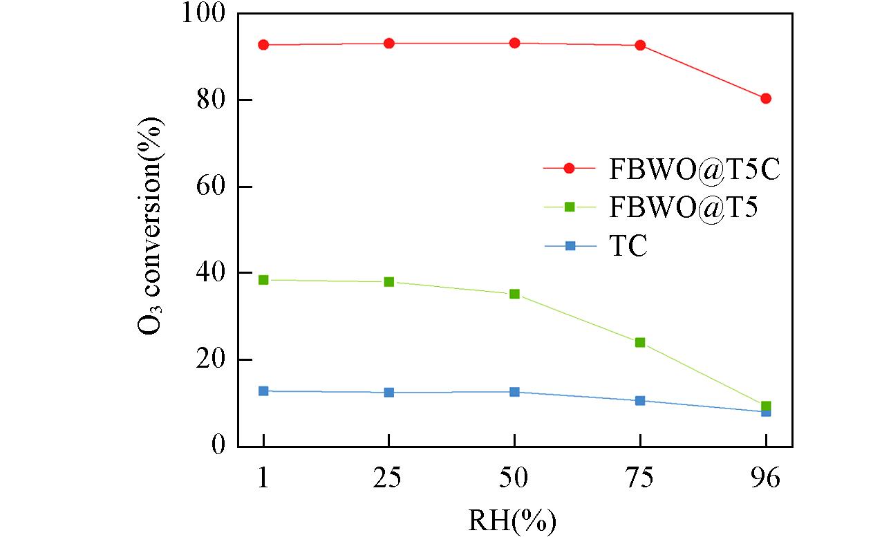 | Fig.8 Effect of reaction humidity on ozone removal rates of FBWO@T5C, TC and FBWO@T5 |
